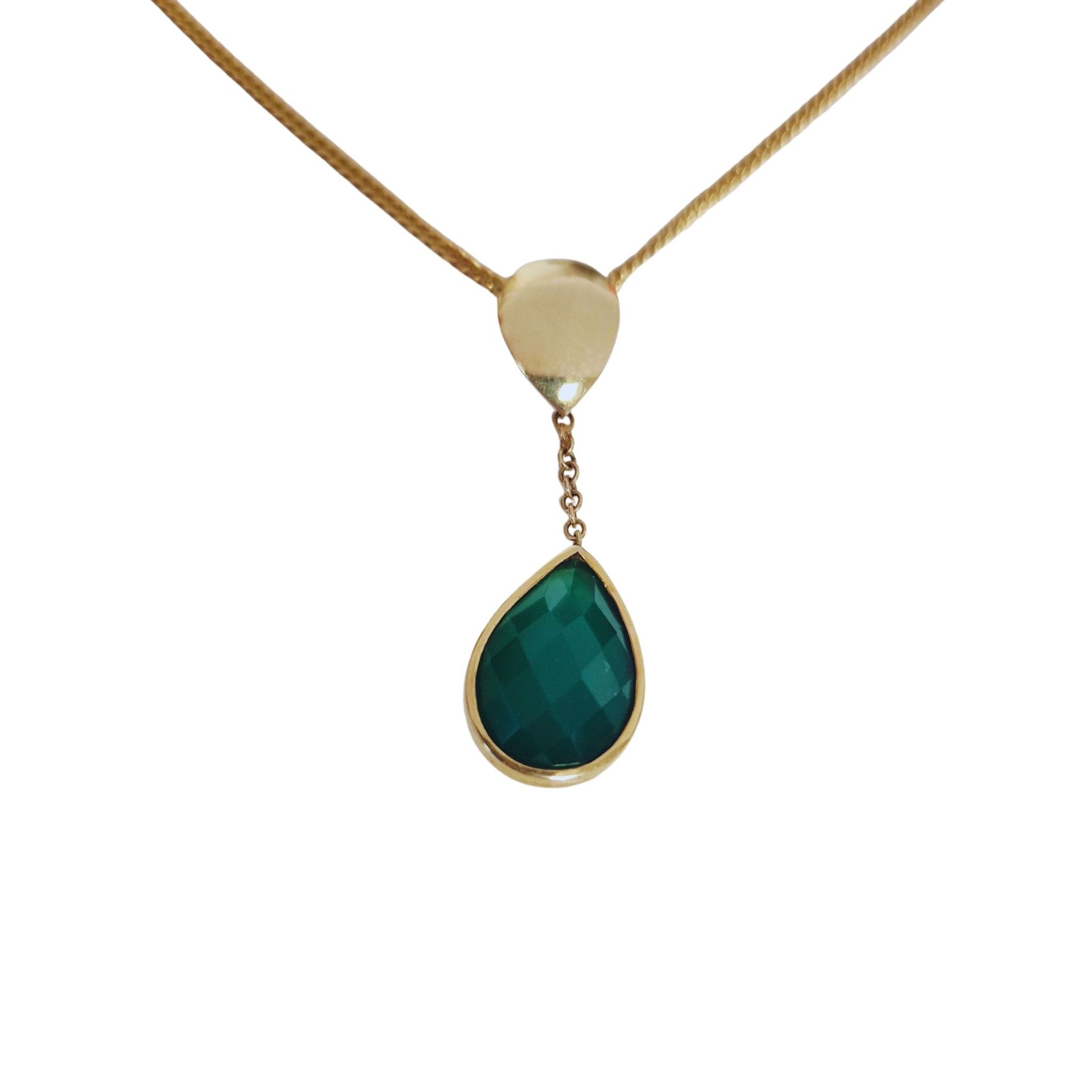 "Calming Green" - Geelgouden hanger, 14 krt met chalcedoon