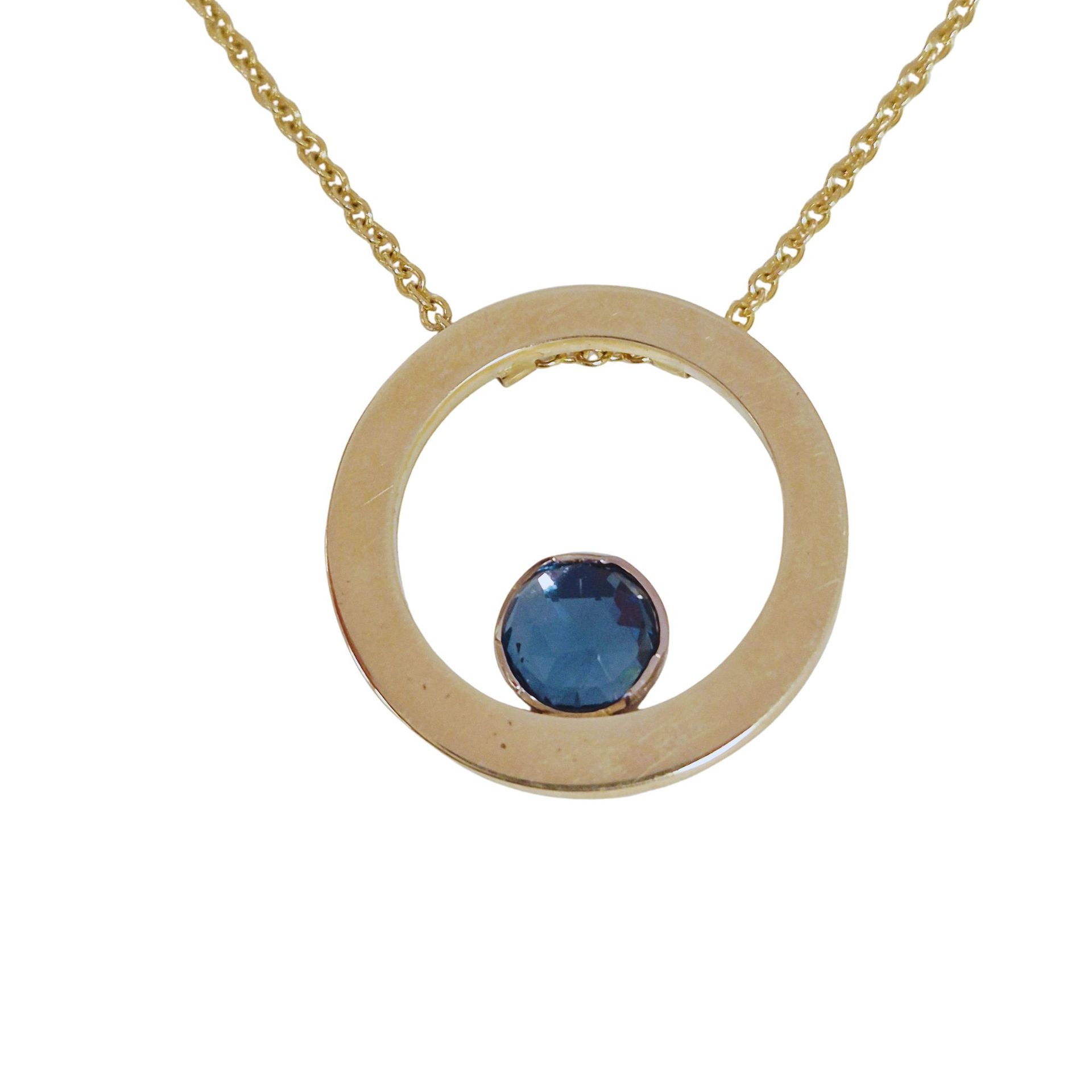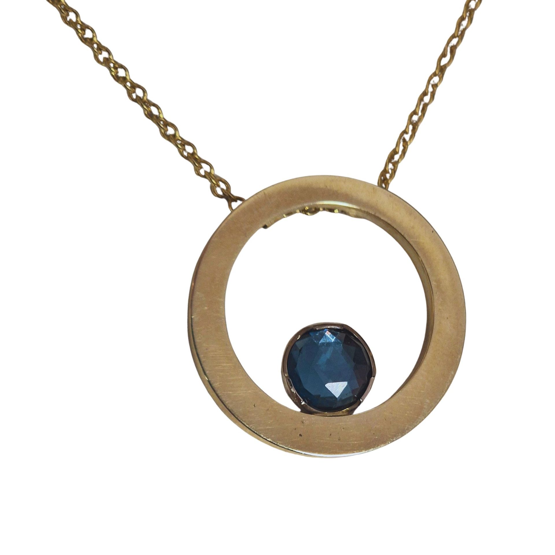 "Blue Eye" - Geelgouden hanger, 14 krt met london blue topaas
