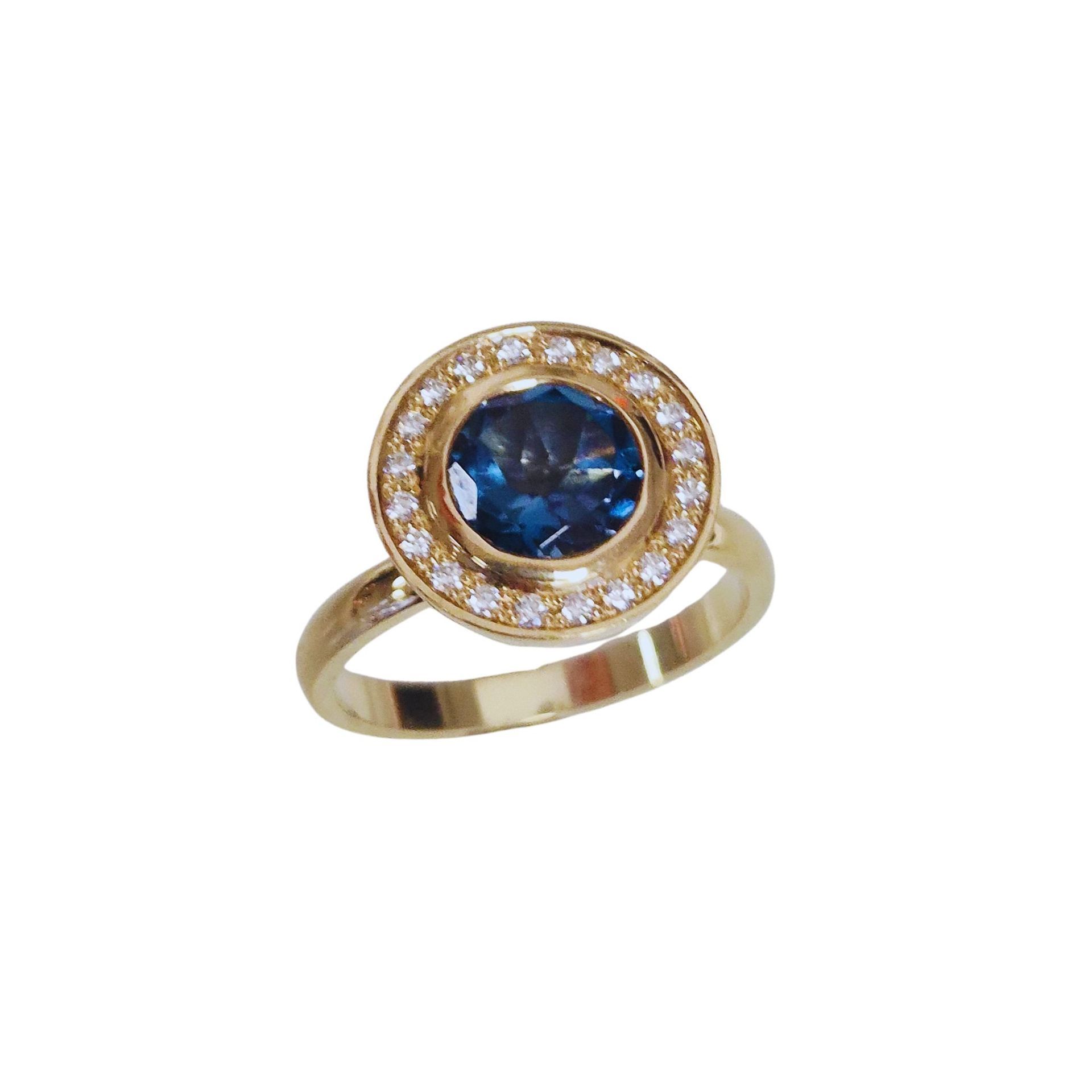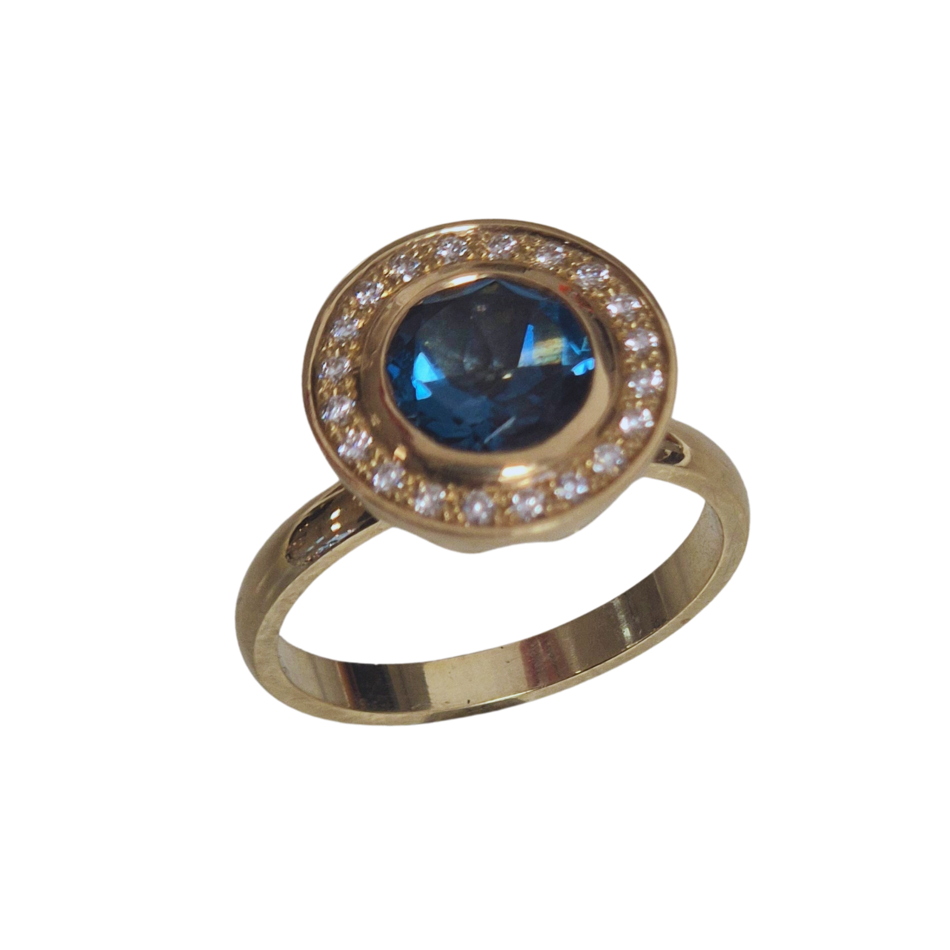 "Blue Sparkle" - Geelgouden ring, 14 krt met london blue topaas en diamanten