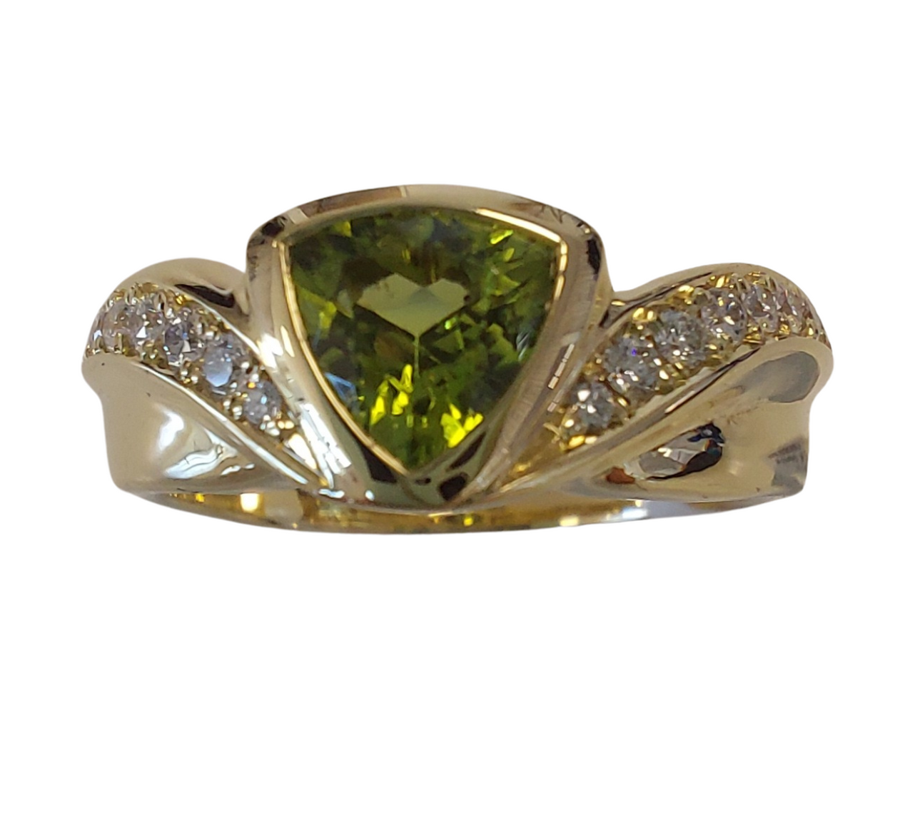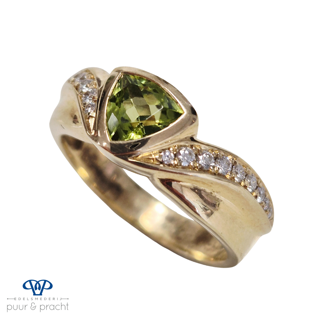 "Precious Green" - Geelgouden ring, 14 krt met peridoot en diamant