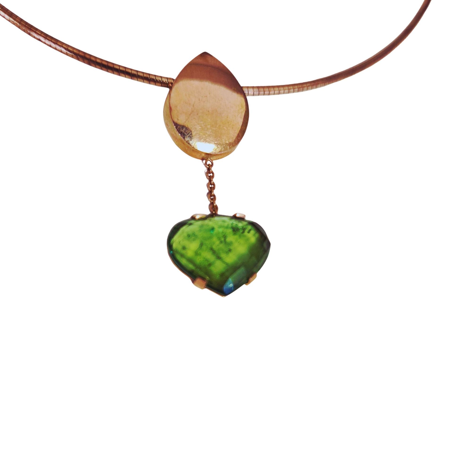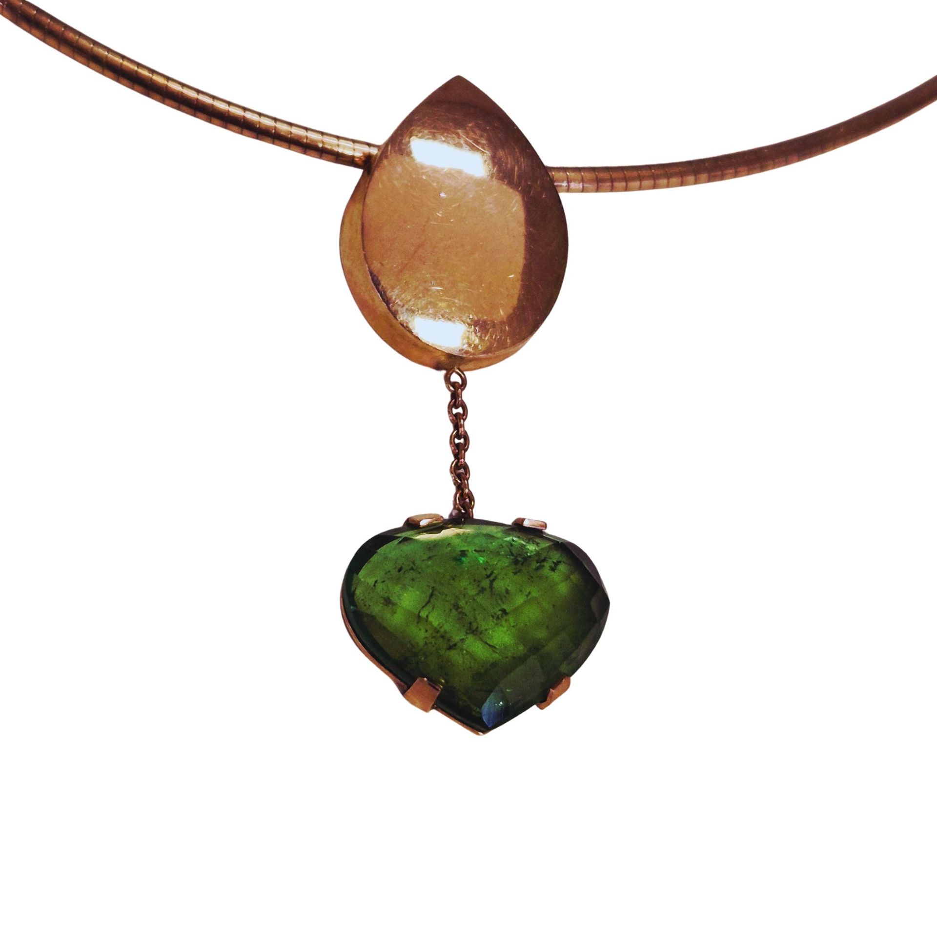 "Green Strength" - Roségouden hanger, 14 krt met toermalijn