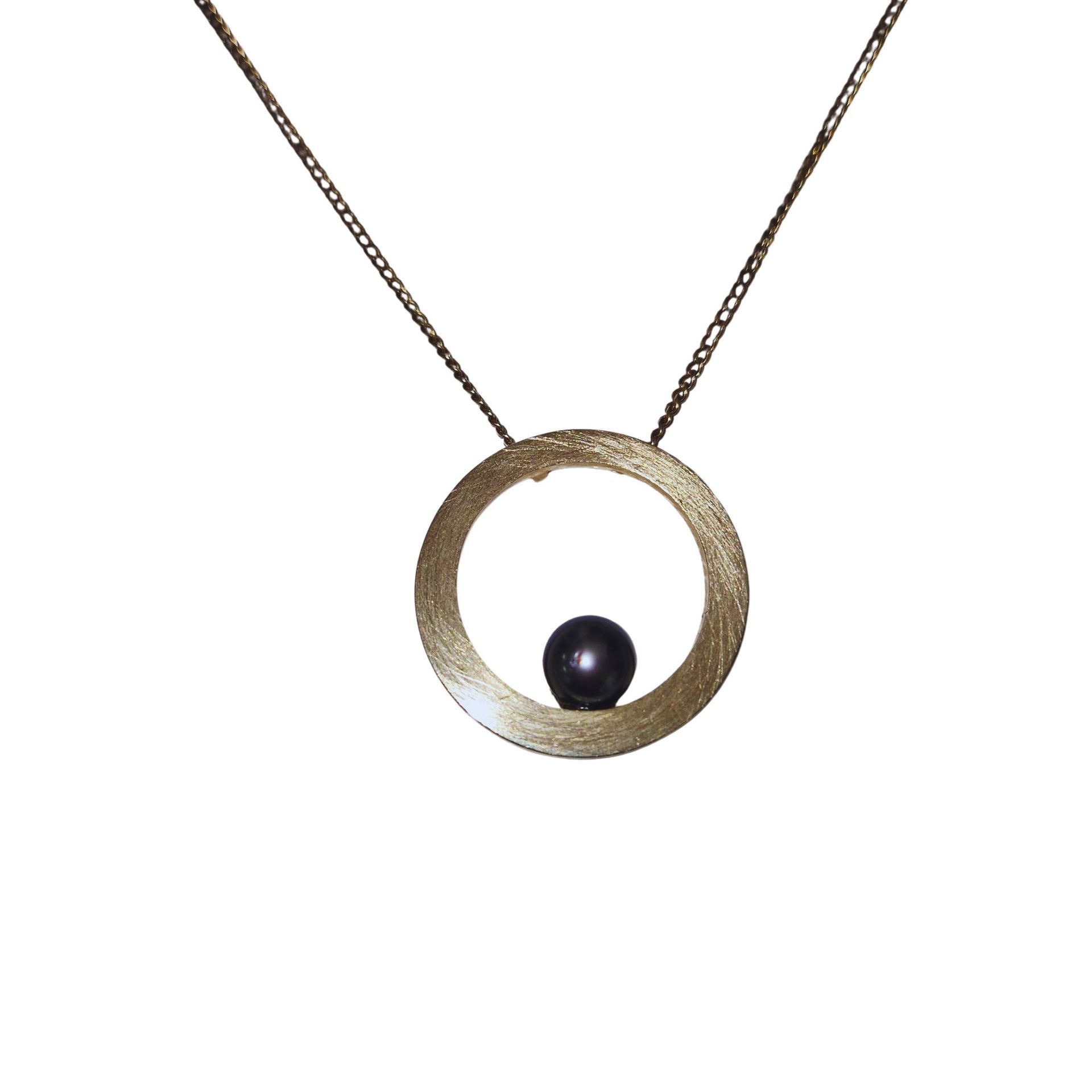 "Embraced Pearl" - Geelgouden hanger, 14 krt met tahiti parel